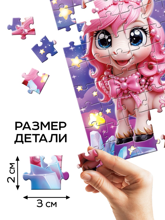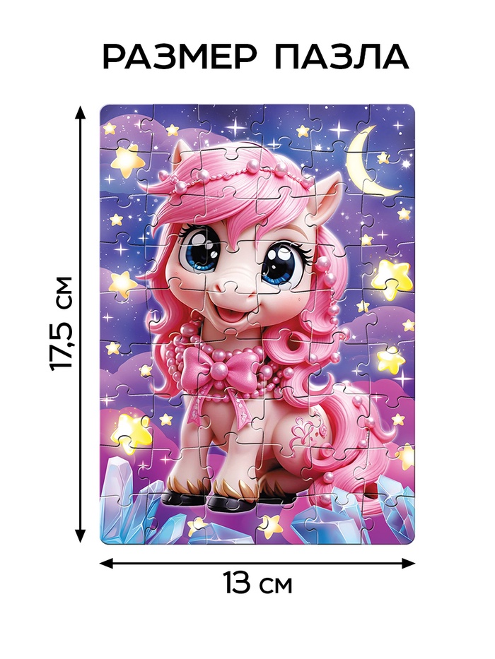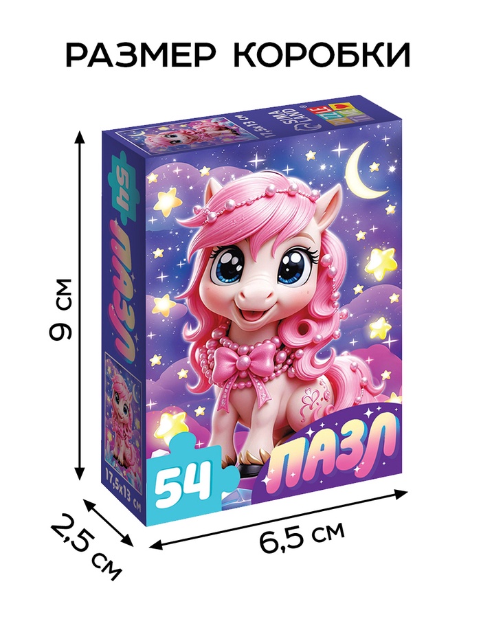 Пазл «Милая лошадка» — это яркая головоломка из 54 элементов, которая перенесёт ребёнка в мир животных и праздничной магии. Этот классический пазл прямоугольной формы создан для детей от 3 лет и станет прекрасным подарком на любой праздник. Собирая пазл, ребёнок создаёт картину с очаровательной лошадкой, которая напоминает пушистые облака вокруг звёзд, добавляя в процесс игры нотку волшебства.