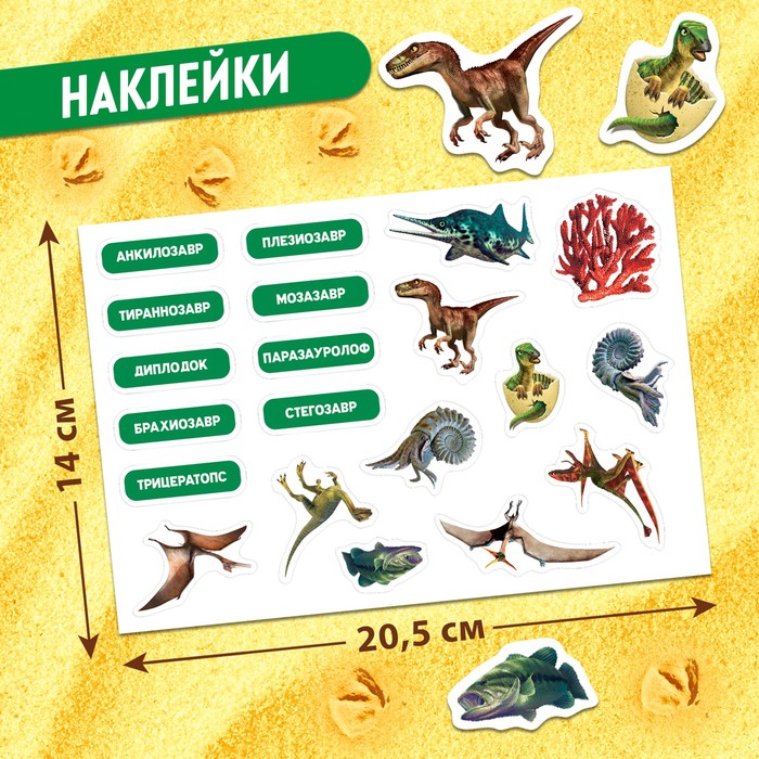 - В комплекте 12 обучающих карточек с интересными фактами о динозаврах.