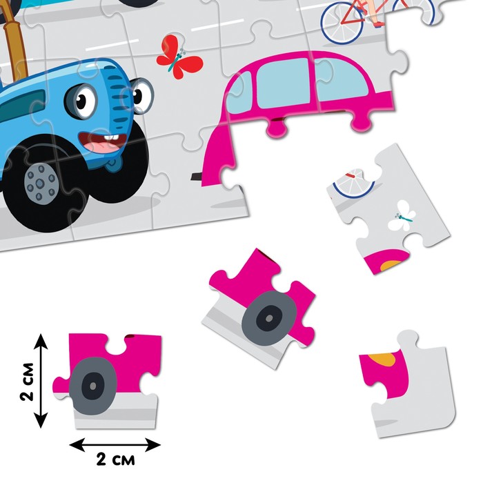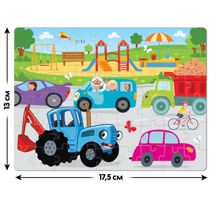Сборка пазла — это не только увлекательное занятие, но и эффективный способ развить у ребёнка усидчивость и пространственное мышление. Яркие иллюстрации с персонажами мультфильма «Синий трактор» делают процесс ещё более интересным, а удобный размер элементов идеально подходит для маленьких ручек.