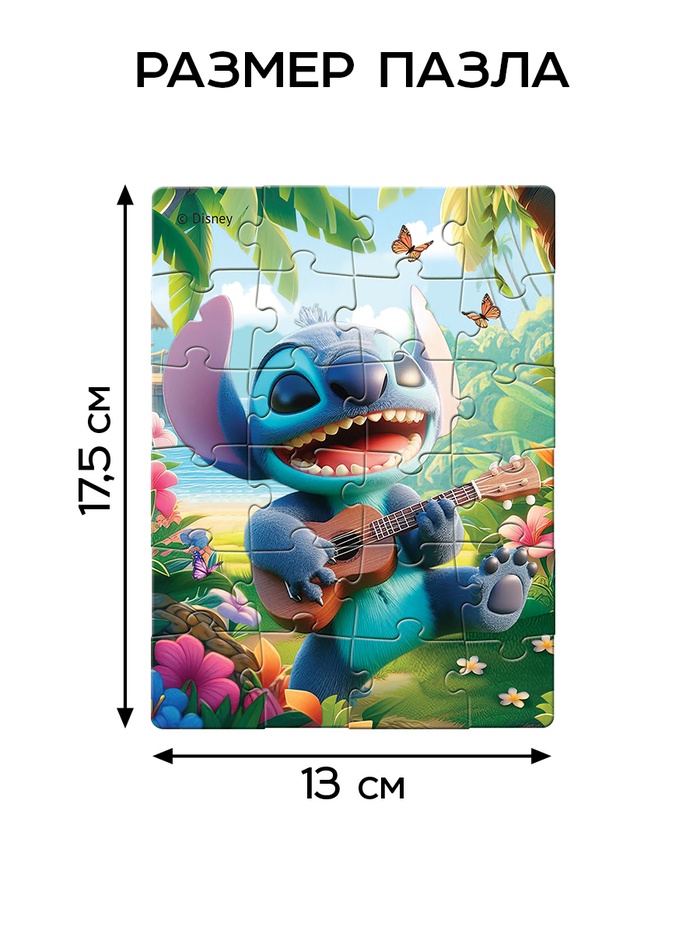 Пазл «Стич» — это увлекательная головоломка из 24 элементов, которая перенесёт ребёнка в мир любимых приключений Лило и Стича. Этот классический пазл создан для детей от 3 лет и станет прекрасным подарком для маленьких поклонников мультфильма. Собирая пазл, ребёнок создаёт яркую картину с забавным Стичем, который дарит ощущение радости и веселья.