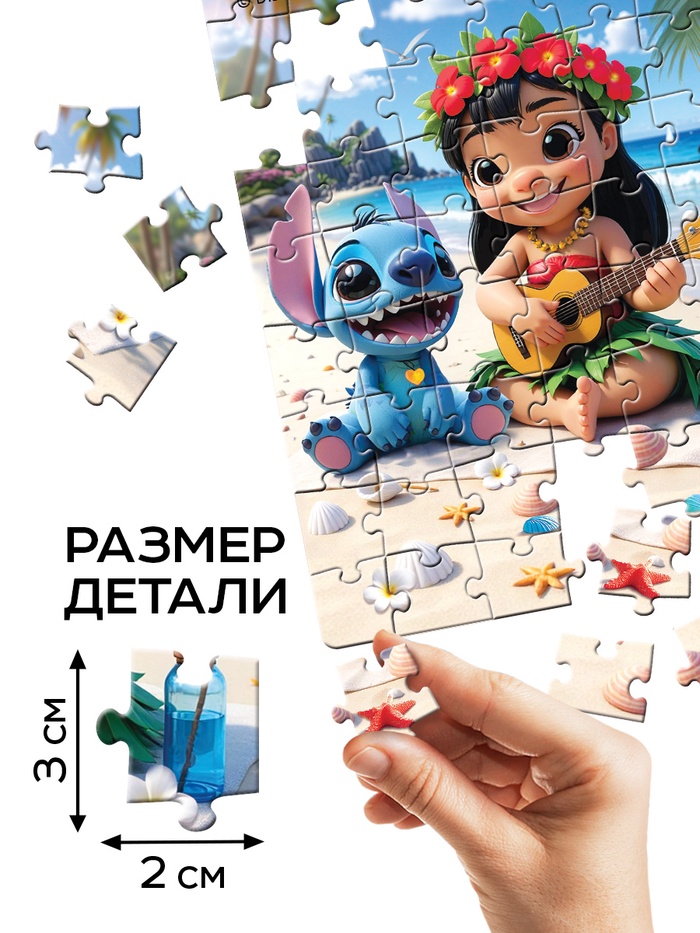 Пазл «Стич» — это яркая головоломка из 54 элементов, которая перенесёт ребёнка в мир любимого мультфильма «Лило и Стич». Этот классический пазл прямоугольной формы создан для детей от 3 лет и станет отличным способом развить внимание, логическое мышление и мелкую моторику. Собирая пазл, ребёнок создаст красочную картину с забавными персонажами, которая украсит детскую комнату или станет частью семейного досуга.