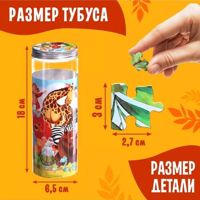 Пазл в тубусе «Зверята джунглей» — это занимательная развивающая игра, которая стимулирует познавательную активность и помогает упорядочить мысли.