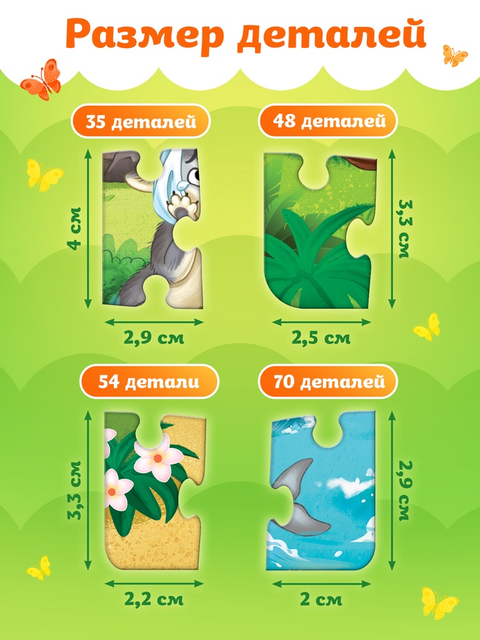 «Айболит» — это 4 пазла в одной коробке, где каждый сюжет — отдельная история про доброту, заботу и дружбу. Доктор лечит зверей, едет в Африку, встречает обезьянок — и всё это ждёт, чтобы ребёнок собрал картинку и рассказал, что происходит.