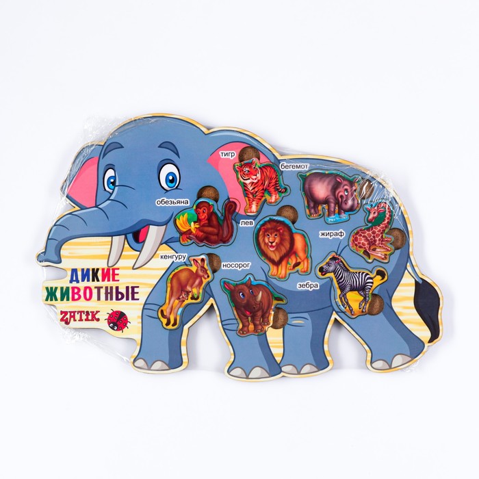 Пазлы деревянные «Дикие животные», 9 деталей, 28.5×18 см