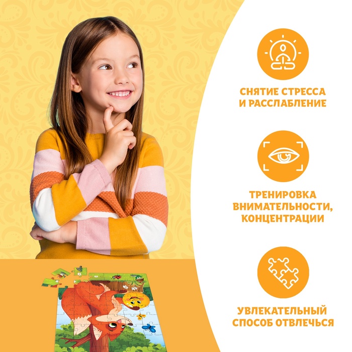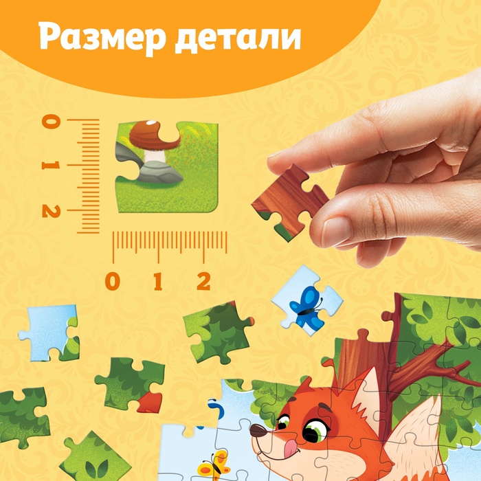 Ребёнок соберёт все 54 детали в одно целое, и получит красочную картинку размером 17,5 × 13 см.