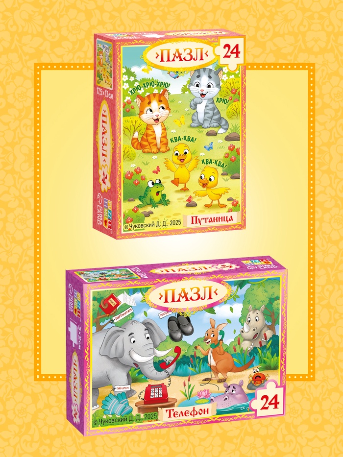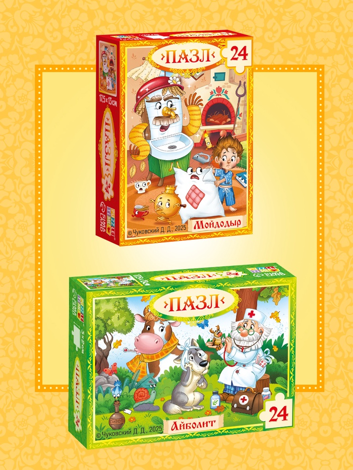 Пазлы «Сказки Корнея Чуковского» — это набор из 10 головоломок, каждая из которых состоит из 24 деталей. Этот классический набор создан для детей от 3 лет и перенесёт ребёнка в удивительный мир любимых сказок Корнея Чуковского. Собирая пазлы, малыш создаст яркие картинки с героями, которые станут частью семейного досуга или украсят детскую комнату.