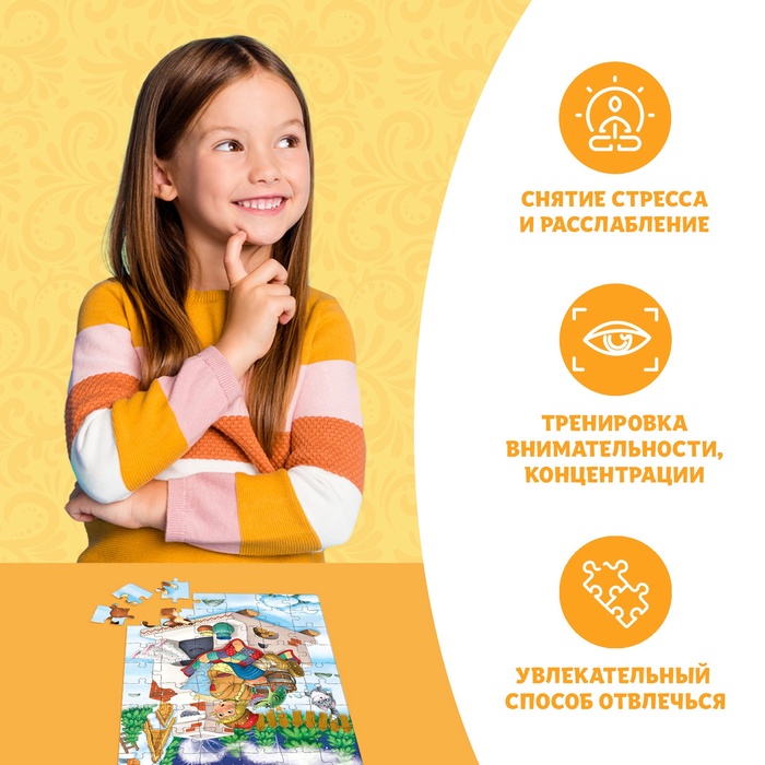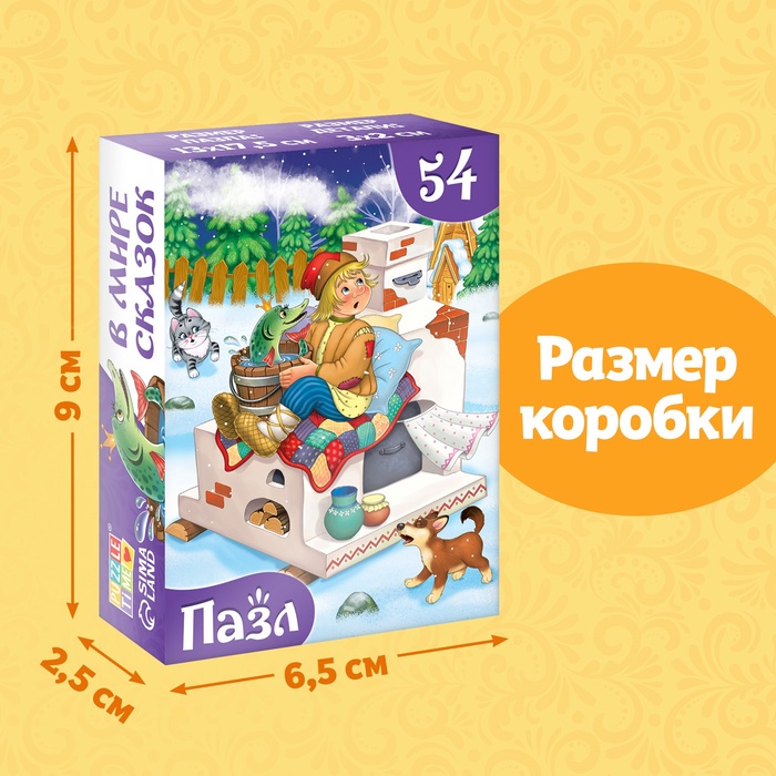 Ребёнок соберёт все 54 детали в одно целое, и получит красочную картинку размером 17,5 × 13 см.