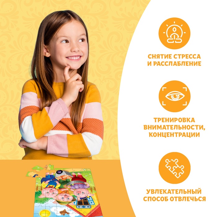 Детский пазл «Сказки №4» — это занимательная развивающая игра, которая стимулирует познавательную активность и помогает упорядочить мысли.