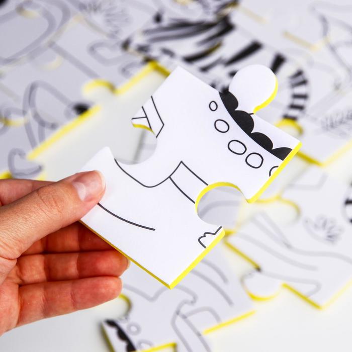 Коврик идеален для обучения малышей, его можно раскрашивать в разные цвета, формируя красивую картинку. Он поможет выучить с мамой и папой достаточно сложные для освоения темы, такие как цвета, формы объектов, и так далее. Так же коврик можно использовать как на столе, так и на полу. Играя с развивающим ковриком-пазлом, дети в игровой форме учатся и развивают свое восприятие мира: