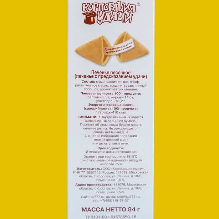 Это печенье представляет собой небольшое хрустящее лакомство, в котором запечен листочек с предсказанием. Печенье может стать не только вкусным десертом, но и отличным вариантом подарка близкому человеку. Он обязательно оценит неординарный подход, а оригинальная надпись-сюрприз оставит после себя массу положительных эмоций!