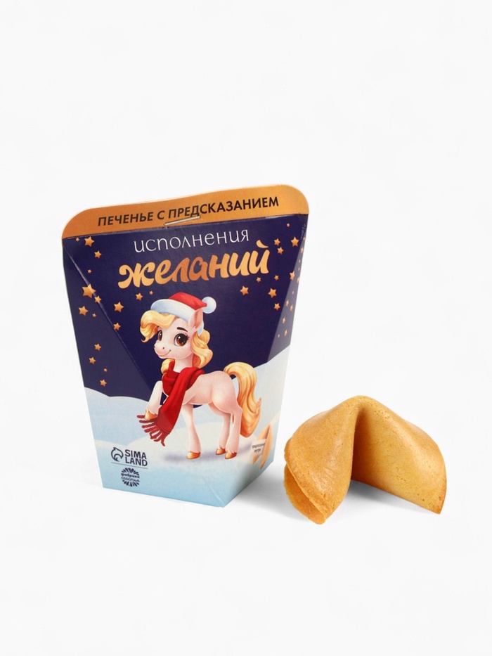 "Исполнения желаний" — это хрустящее печенье со вкусом ванили. Внутри ждёт оригинальное предсказание, готовое развеселить и вдохновить, подстегнув вашу фантазию и подняв настроение. Узнайте, что готовит вам судьба, и делитесь своими впечатлениями с друзьями, создавая атмосферу веселья и дружеского общения.
