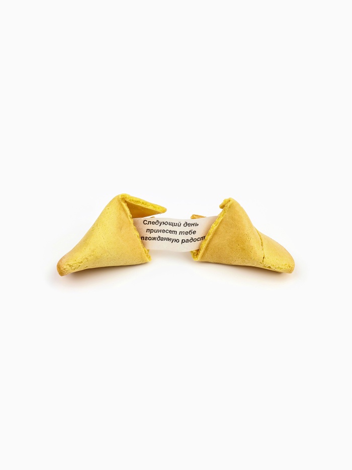 Печенье с предсказаниями — сладкий сюрприз с посланием! Хрустящее ванильное печенье в традиционной форме, внутри — бумажка с оригинальным предсказанием.