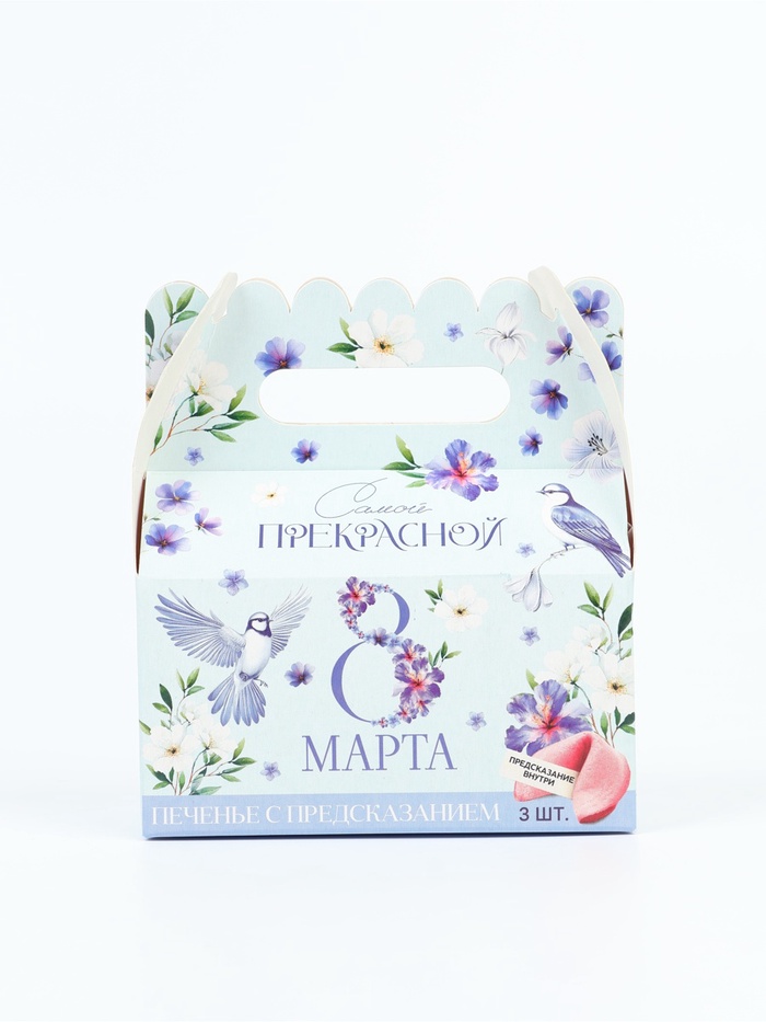 Печенье с предсказаниями "8 марта с птичками" в формовой коробке, 3 шт 10040699