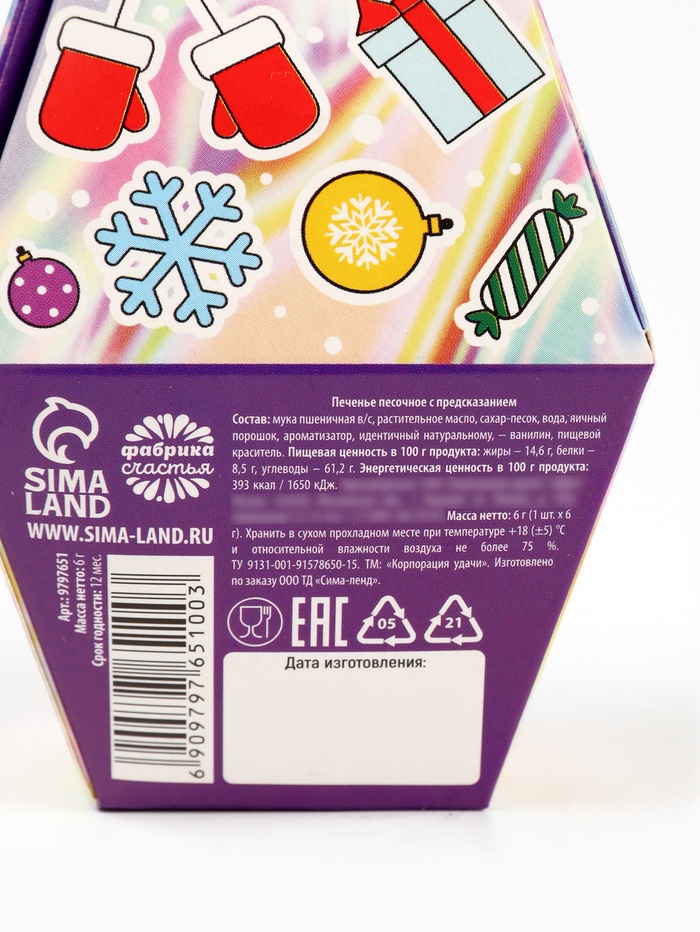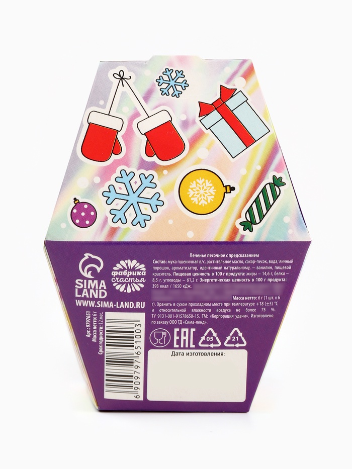 Состав: мука пшеничная в/с, растительное масло, сахар-песок, вода, яичный порошок, ароматизатор, идентичный натуральному, - ванилин, пищевой краситель.