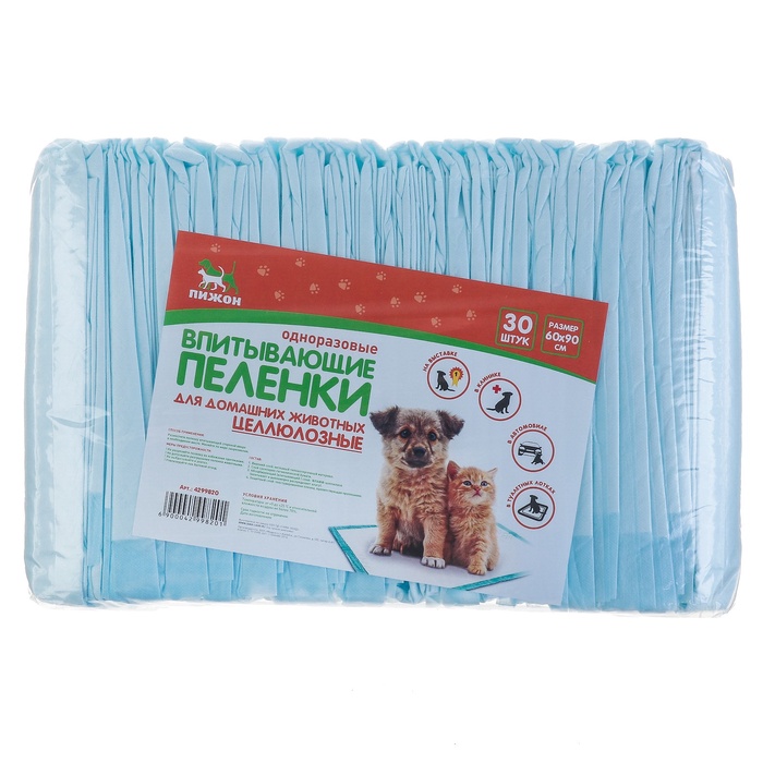 Впитывающие целлюлозные пелёнки 60 х 90 см - необходимая и незаменимая вещь для тех у кого есть домашние питомцы! Изготовленные из гипоаллергенных материалов, которые и не вызывают раздражения кожи и не имеют запаха, что делает их идеальным выбором для даже самых чувствительных животных.