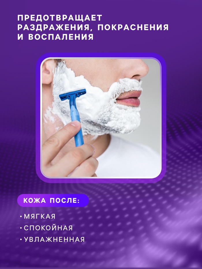 - Обеспечивает легкое скольжение лезвия для эффективного и безопасного бритья.