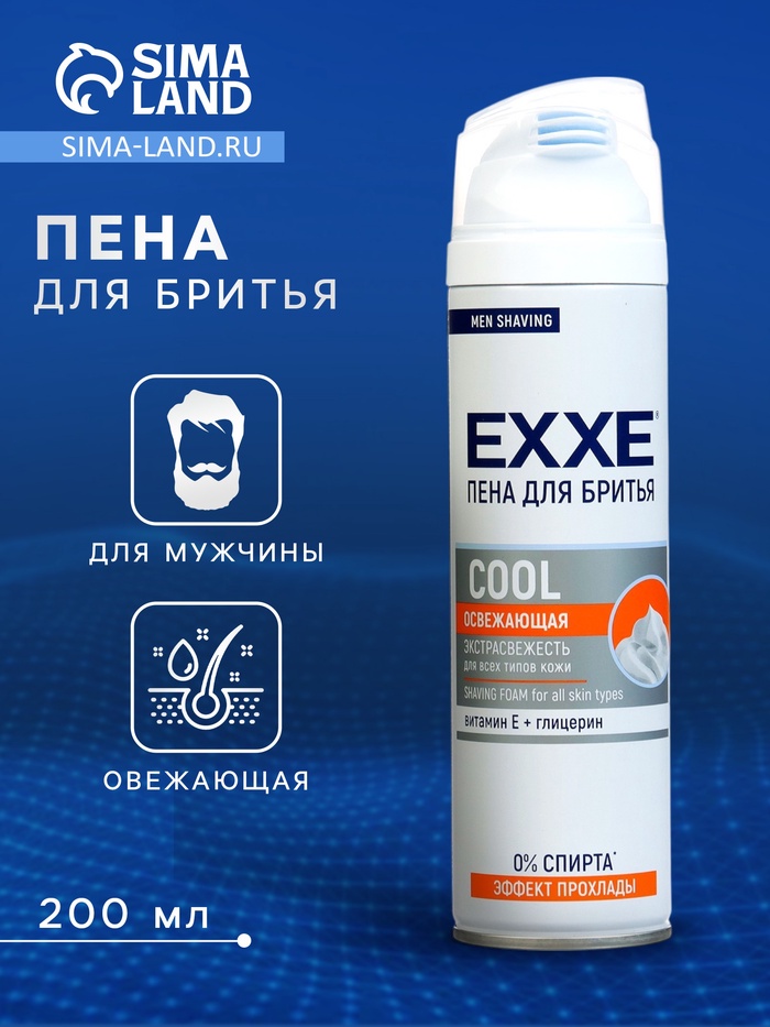 Пена для бритья Exxe Cool. Новая обогащенная формула с глицерином и витамином E обеспечивает ультрагладкое и комфортное бритье без покраснений, естественное ощущение легкости и прохлады формула без спирта с аллантоином, защиту кожи от микроповреждений и раздражений смягчает и увлажняет. Подходит для всех типов кожи.