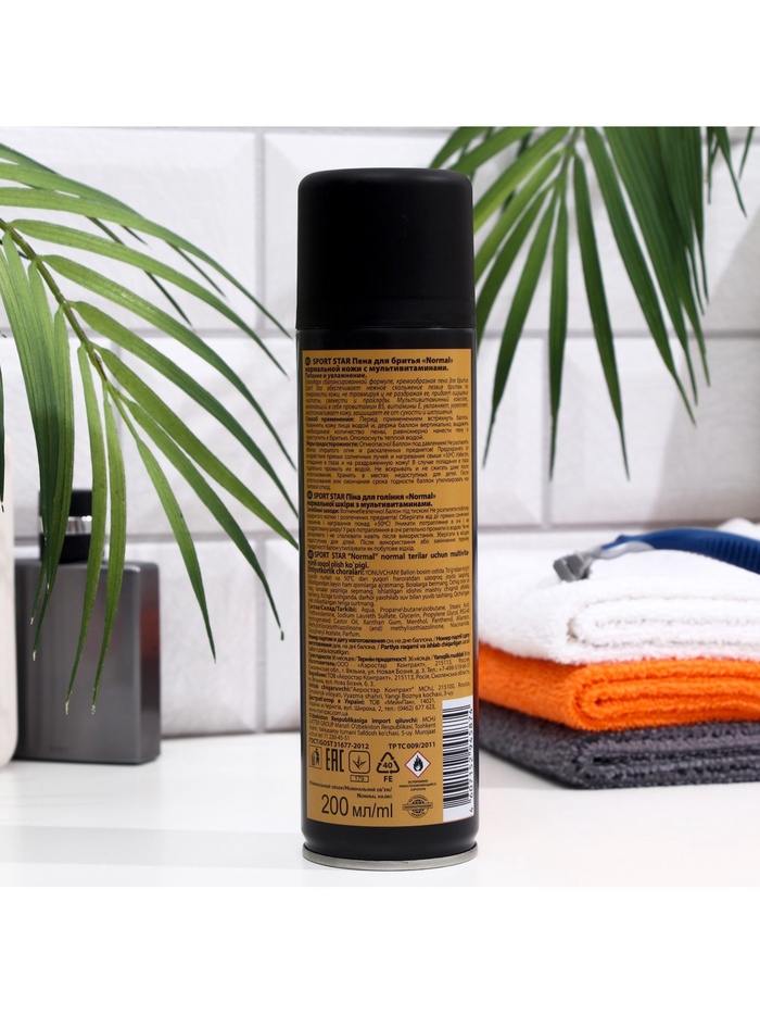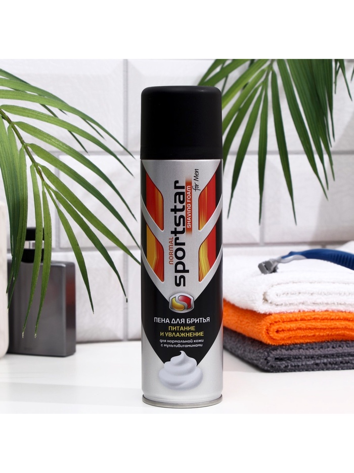 Пена для бритья мужская SportStar Normal подходит для нормальной кожи и всех типов кожи. Приятная мягкая кремовая текстура гладко и легко ложится на поверхность кожи, обволакивает и приподнимает волоски для максимально гладкого и нежного бритья. Входящие в состав мультивитамины и витамин B5 укрепляют и восстанавливают кожу, поддерживают водный баланс, предотвращают появление сухости, стянутости и шелушения. Пена для бритья мужская SportStar может использоваться на различных участках тела и для любых видов бритья. Возможно нанесение руками и помазком. Подходит для классического бритья с помощью станка, опасного лезвия и электрической бритвой (поддерживающей функцию влажного бритья).