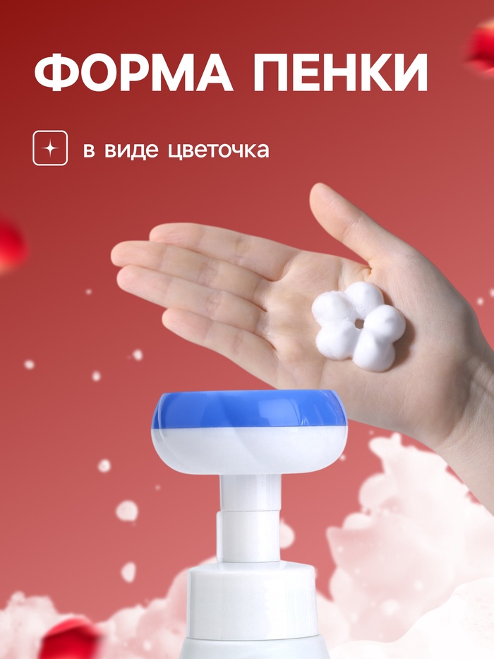 При нажатии на дозатор появляется воздушная пена в форме красивого цветочка, превращая обычный уход в приятный ритуал. Специальная формула бережно очищает кожу, оставляя ощущение свежести и комфорта.