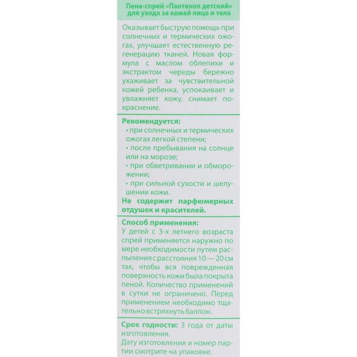 Пена-спрей «Пантенол детский» для ухода за кожей лица и тела