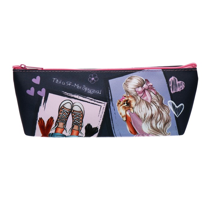 Пенал мягкий, 1 отделение, 80 х 190(225) х 40 мм, объёмный, ПМО 32-20 "Девочка с собачкой"