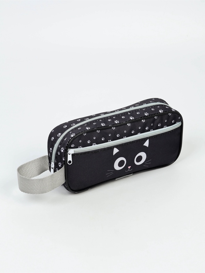 Пенал мягкий 2 отд. Объем 100*220*40 боковой карман, с ручкой "Котик"