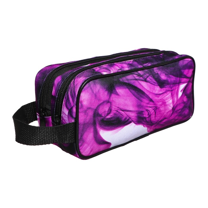 Пенал мягкий 2 отделения, 100 х 220 х 70 мм, объёмный, с ручкой,Calligrata, фиолетово-черный