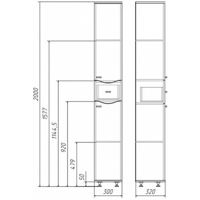 Пенал оснащен двумя дверцами, открывающимися в правую сторону, и одним ящиком.