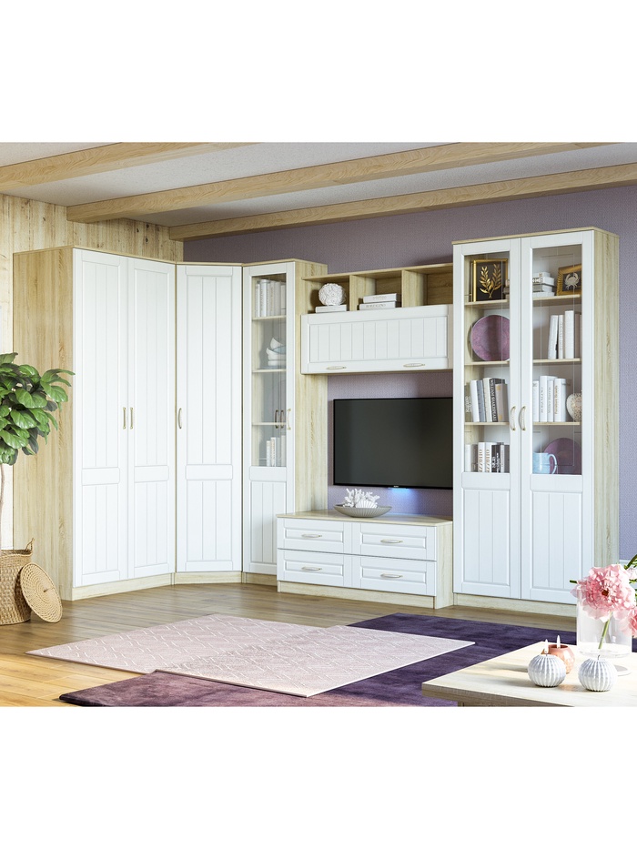 Пенал Оливия Левый, 452х384х2198, Белое дерево/Дуб сонома