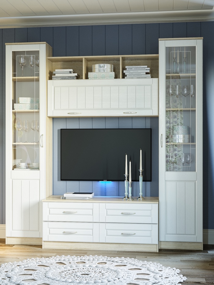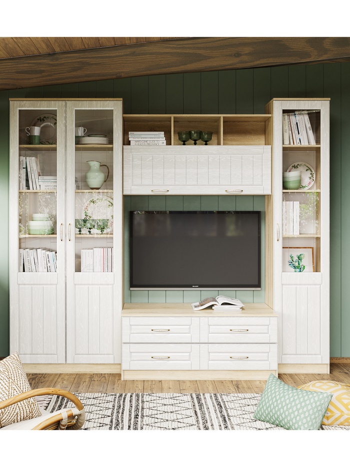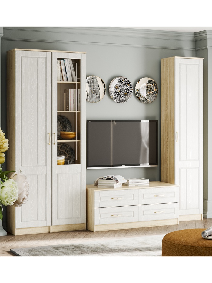 Пенал Оливия Правый, 452х384х2198, Белое дерево/Дуб сонома
