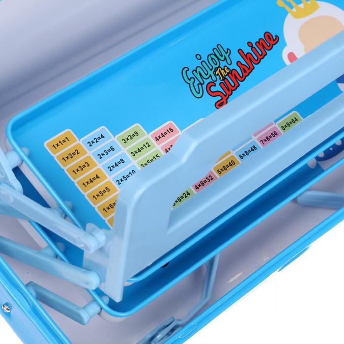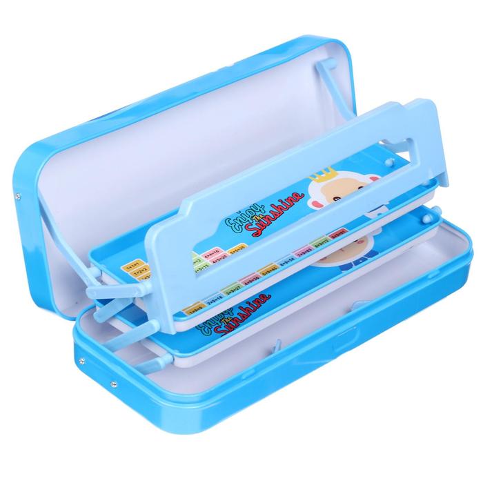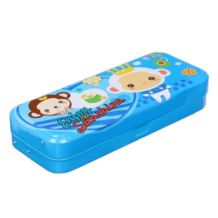 Организованность — залог успеха и в школе, и на работе. Приучайте своего ребёнка к собранности с самого детства — подарите ему пенал школьный металл "Игрушки" секционный, с подставкой для книг, голубой.