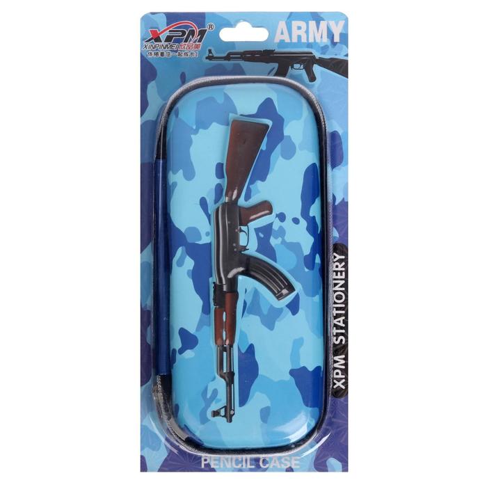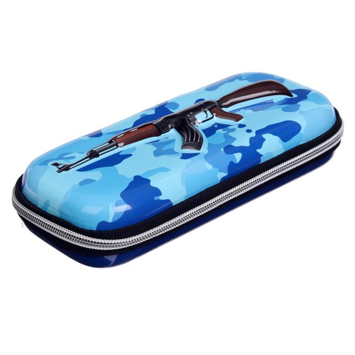 Пенал школьный на молнии "Ружье", милитари голубой