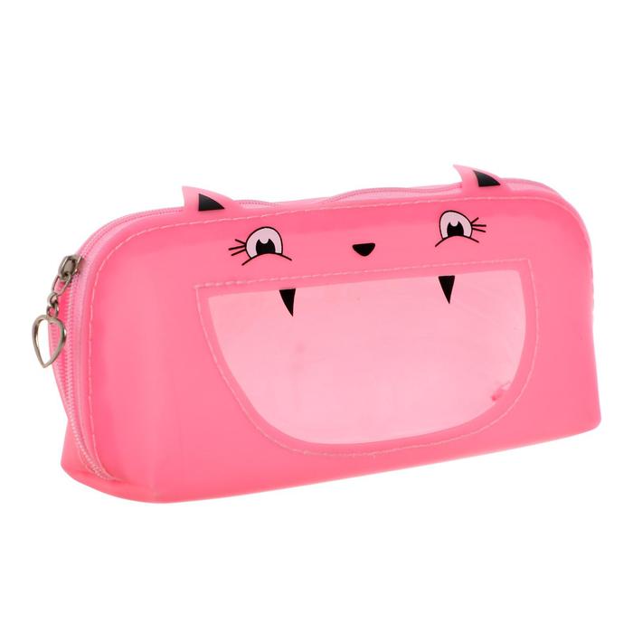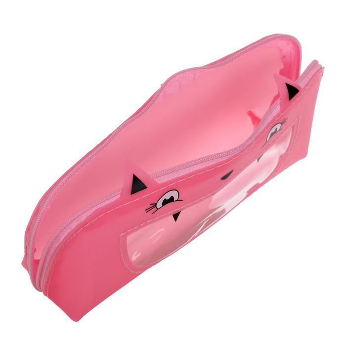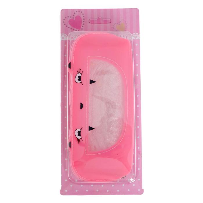Пенал школьный, на молнии силиконовый "Котик", розовый