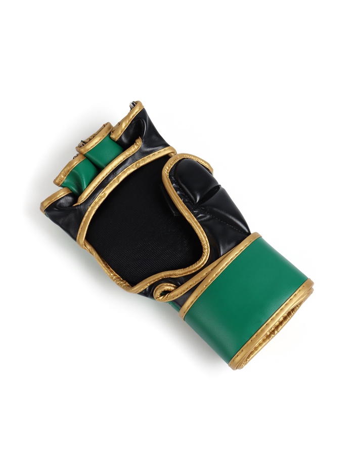 Перчатки для смешанных единоборств защищают кисти при ударах. Открытые фаланги позволяют бороться, не стесняя движений. Анатомический крой перчатки повторяет естественную форму кулака. Широкий ремень с липучкой плотно прилегает к руке и предотвращает риск возникновения травмы запястья.