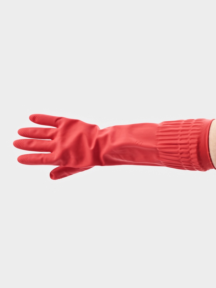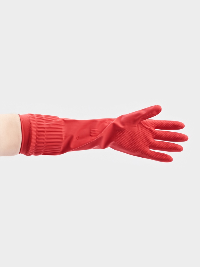 Перчатки производят из каучука — натуральной резины. Он водонепроницаем и хорошо растягивается: даже после неоднократного использования материал не теряет своих свойств.