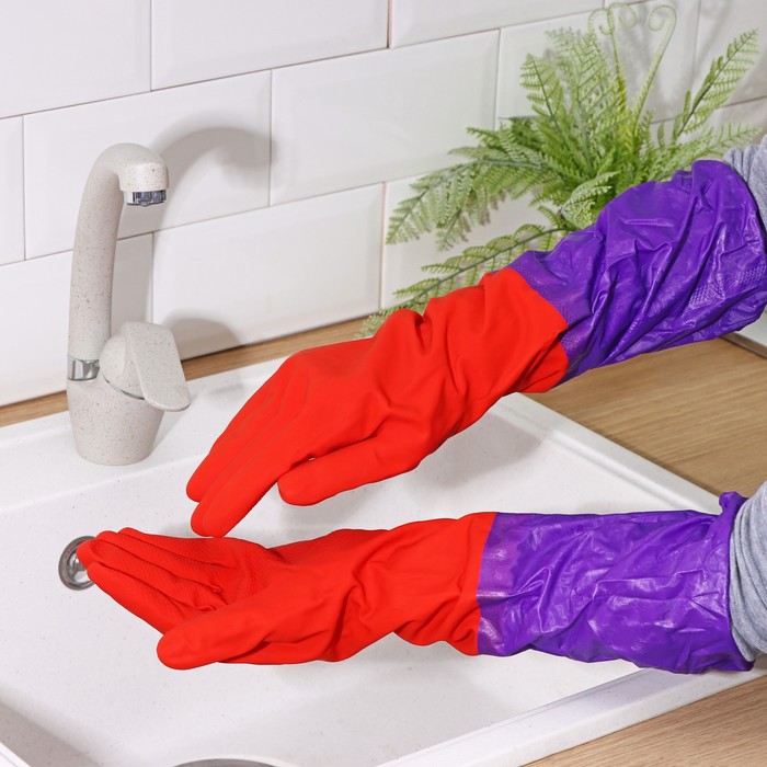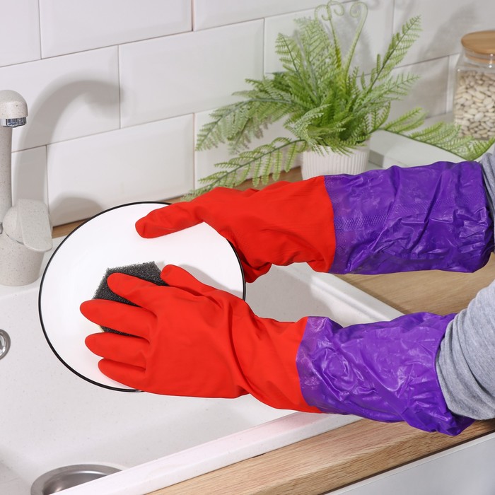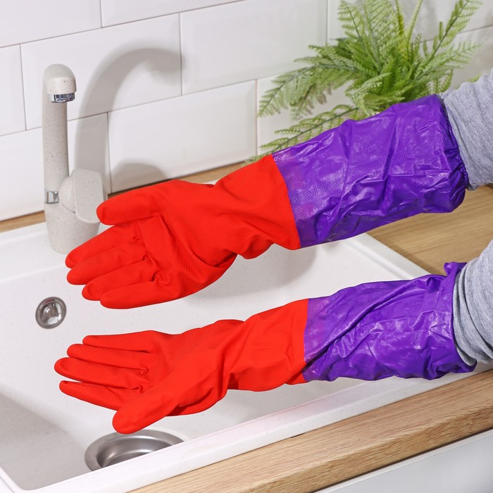 Перчатки производят из каучука — натуральной резины. Он водонепроницаем и хорошо растягивается: даже после неоднократного использования материал не теряет своих свойств.