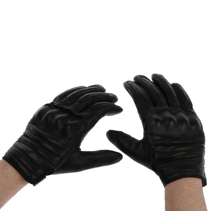 Мотоциклетные перчатки с защитными вставками из кожи, размер М. Обеспечивают комфорт и безопасность при вождении мотоцикла. Вставки на ладонях и пальцах для дополнительной защиты от ударов и истирания. Качественные кожаные материалы для долговечности и износостойкости. Стильный дизайн в черно-сером цвете, который подходит к любой мотоциклетной одежде.