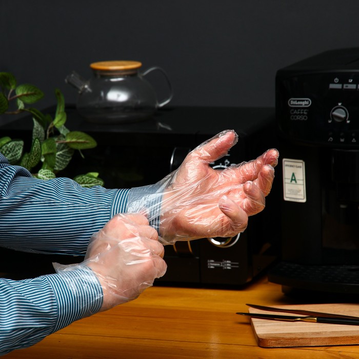 Одноразовые перчатки из полиэтилена в упаковке по 100 штук представляют собой удобное и гигиеничное средство для различных задач, где требуется защита рук.