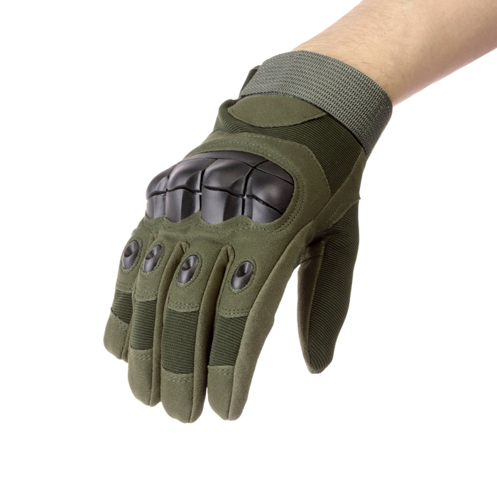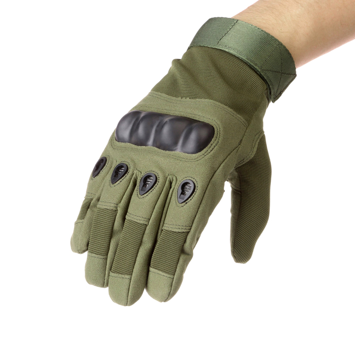 Перчатки с пластиковой защитой суставов и фиксацией на запястье с помощью липучки представляют собой надёжный аксессуар для военно-тактических игр, таких как страйкбол и пейнтбол, а также для активного отдыха и выживания в экстремальных условиях.
