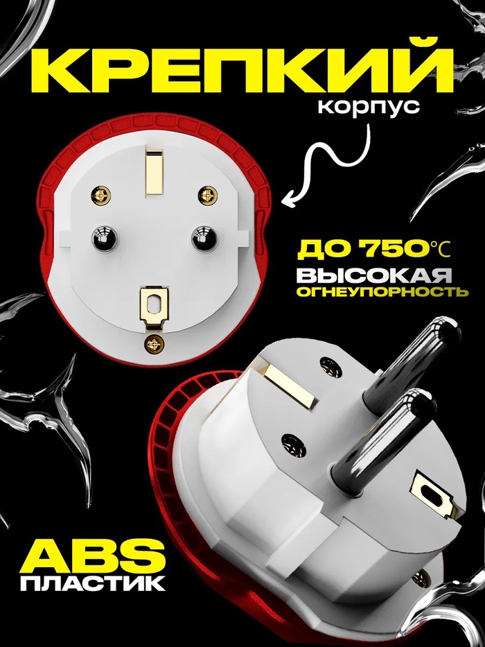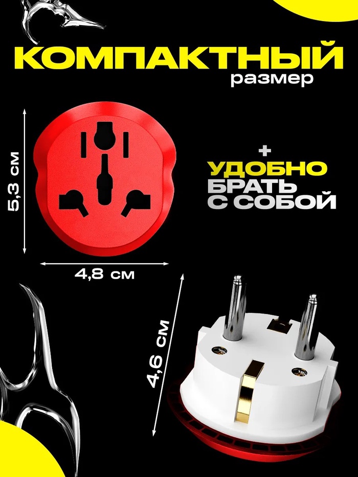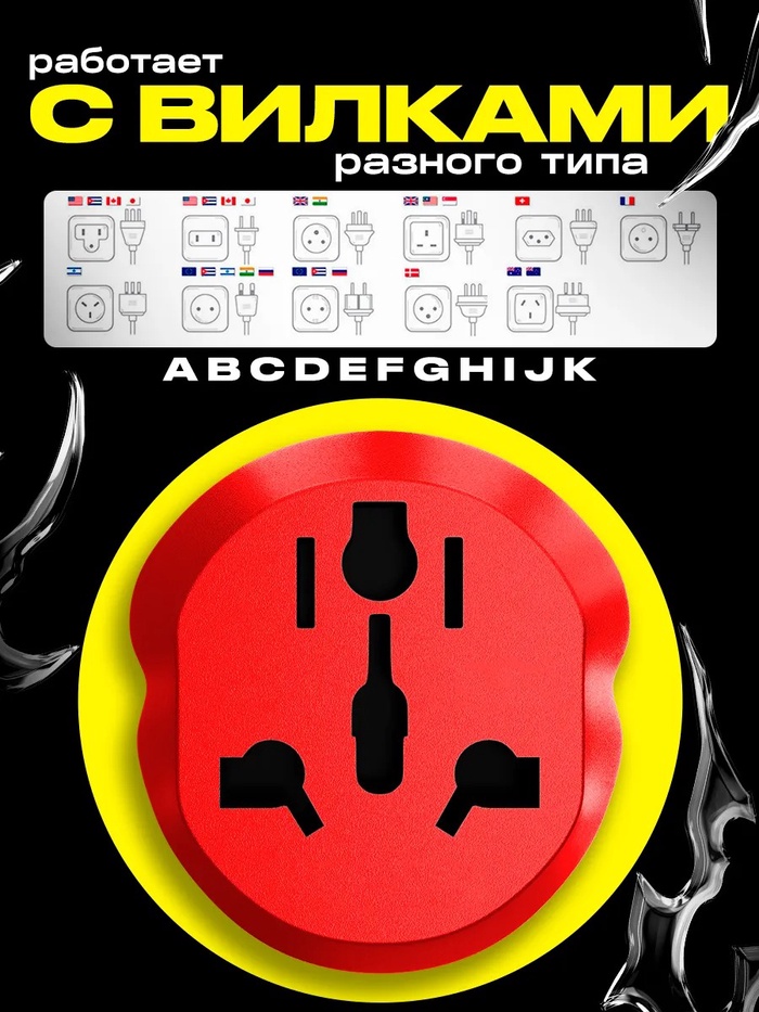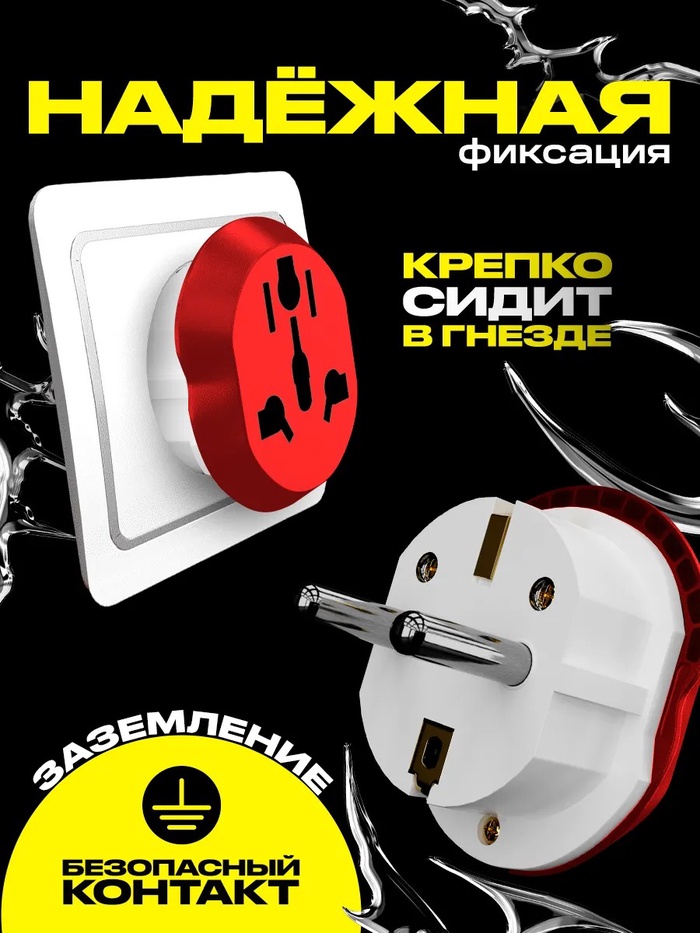 Переходник универсальный 16 А, с заземлением, 220 В, заподлицо в розетку, красный