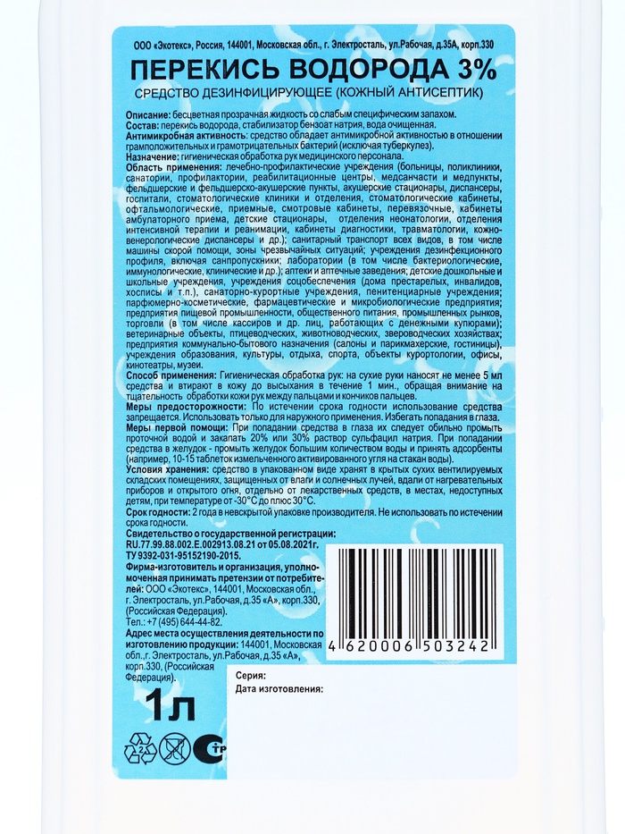 Подходит для тех, кто ищет перекись водорода 3% для дезинфекции, антисептик для ран и поверхностей, раствор для медицинских целей и универсальное средство для гигиены.