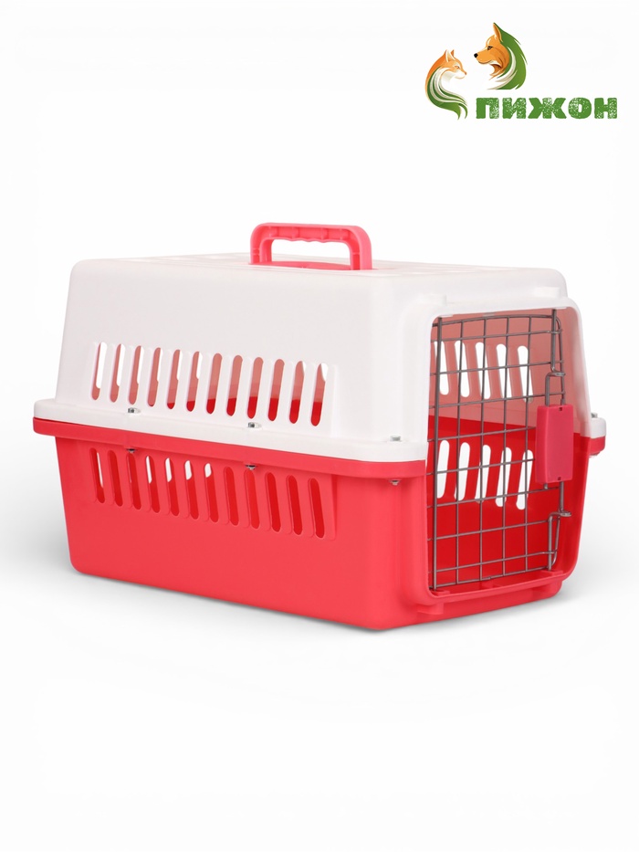 Переноска для животных, 49×31×31 см, с металлической дверью, пластик, белая, розовая
