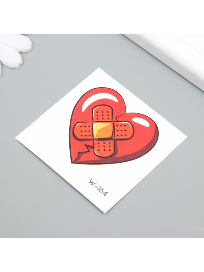 Представляем яркую цветную переводную татуировку, которая станет символом заботы и любви в вашем образе. Её дизайн вдохновлён изображением сердца с лейкопластырем, что символизирует исцеление, поддержку и заботу. Компактный размер (6×6 см) делает её универсальным выбором для украшения любого участка тела, а яркие цвета привлекают внимание и подчёркивают эмоции.