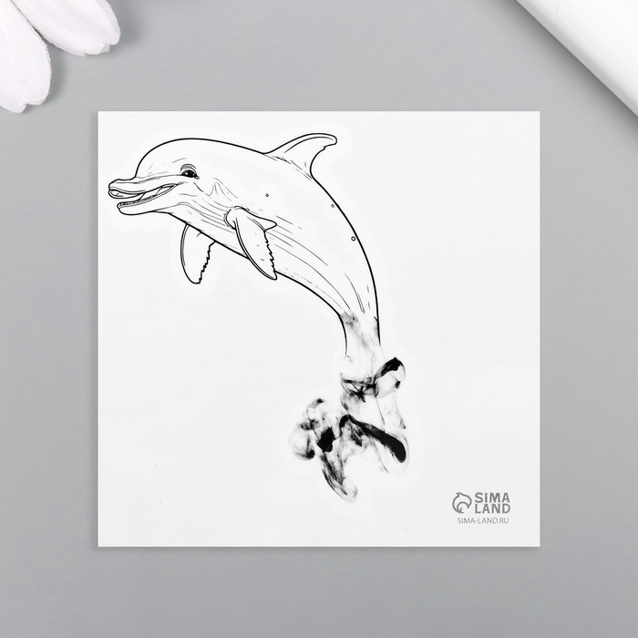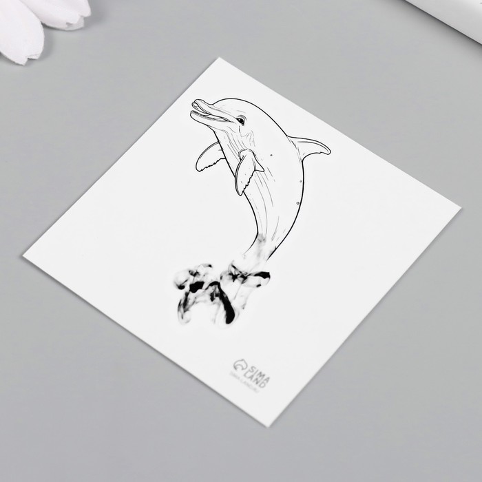 Переводная тату на тело чёрная «Чернила. Дельфин», 6×6 см