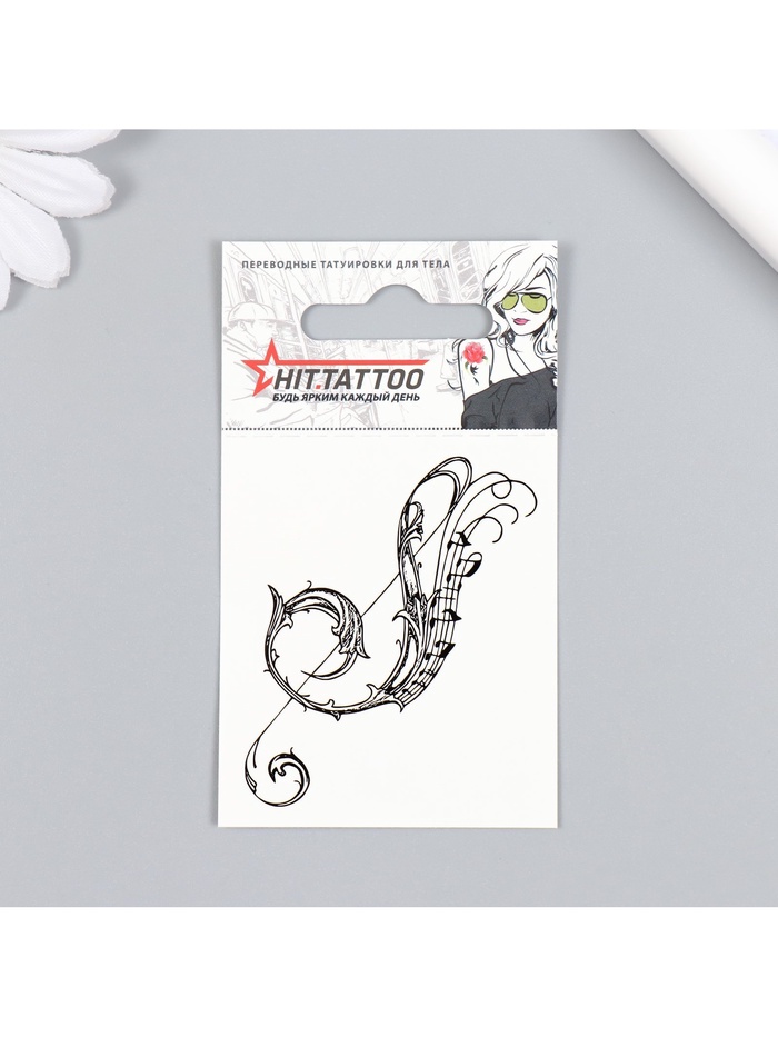 Переводная тату на тело чёрная «Скрипичный ключ», 5.3×6.2 см