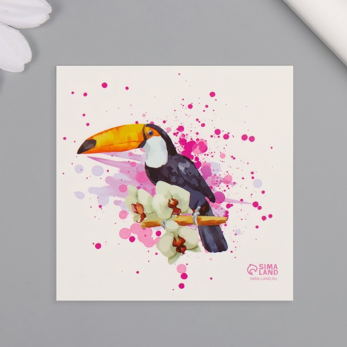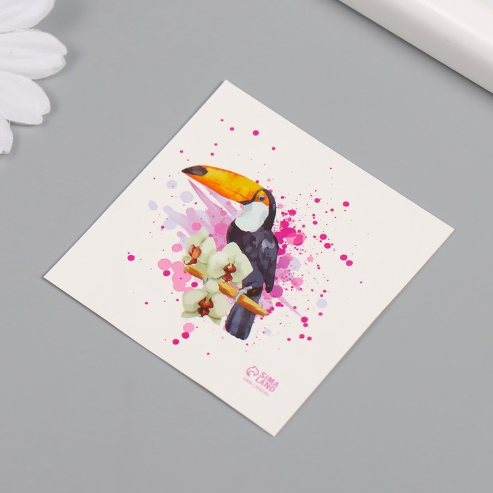 Легкость и самовыражение: Временная татуировка – это идеальный способ выразить себя без долгосрочных обязательств. Подчеркните свою индивидуальность с акварельным туканом и наслаждайтесь комплиментами окружающих!