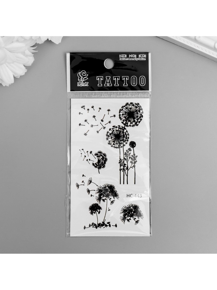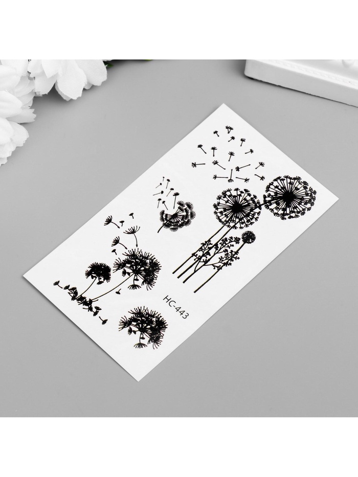 Переводные тату на тело чёрные «Одуванчики», 10.5×6 см