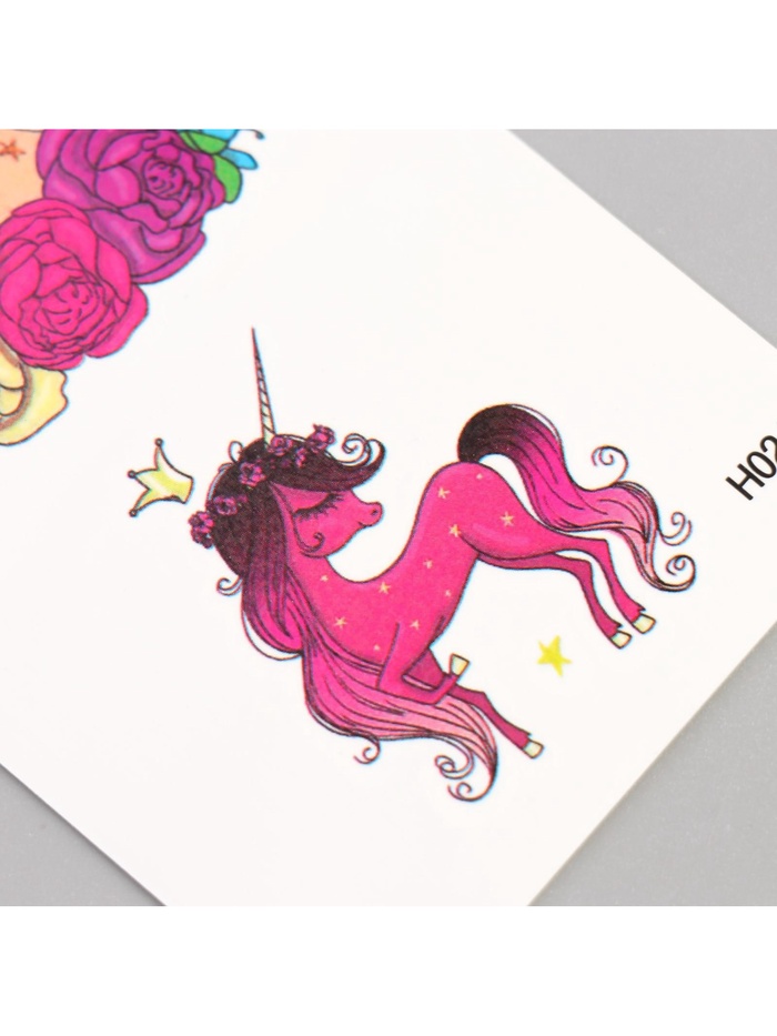 Разноцветное исполнение рисунка создаёт ощущение сказки, а детализированные элементы делают его живым и привлекательным. Единороги в цветочных венках — это символ гармонии, доброты и магии, которые органично впишутся как в повседневный стиль, так и в праздничные образы. Универсальное место приклеивания позволяет разместить их на любом участке тела, делая их идеальным выбором для маленьких принцесс и их родителей.