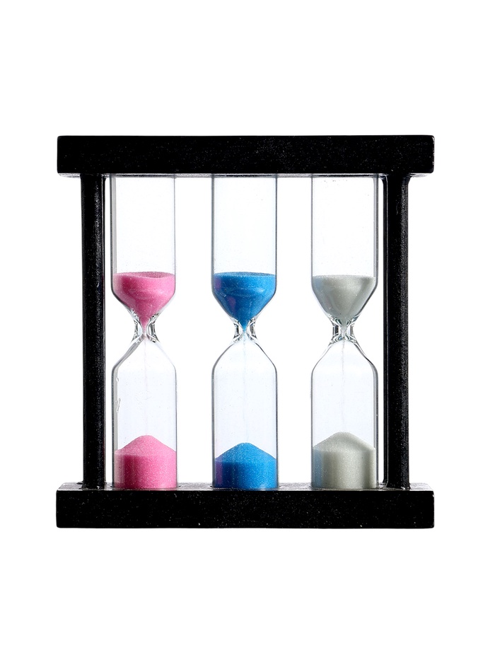 Разноцветные песочные часы – лучший способ декорировать интерьер комнаты или офиса. Изготовленные из стекла, дерева и декоративного цветного песка, эти часы подойдут под любой интерьер. Имеют временной цикл в 3,4 и 5 минут, прекрасно используются для отсчета времени в роли таймера, а также станут оригинальным и полезным атрибутом в виде сувенира. Отличный подарок любимой женщине, коллеге, маме и бабушке. Глядя на движение разноцветных песчинок вы постепенно будете чувствовать как проходит ваша тревога и стресс. Стилизованные песочные часы состоят из двух сосудов, соединённых узкой горловиной, один из которых частично заполнен песком.