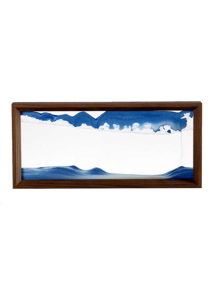 Вы воздействуете одним прикосновением, когда рамка переворачивается, песок начинает произвольно струиться вниз, огибая пузырьки жидкости, образуя удивительной красоты пейзажи. Наблюдение за этим процессом позволяет человеку расслабиться, отдохнуть, успокоить нервы.